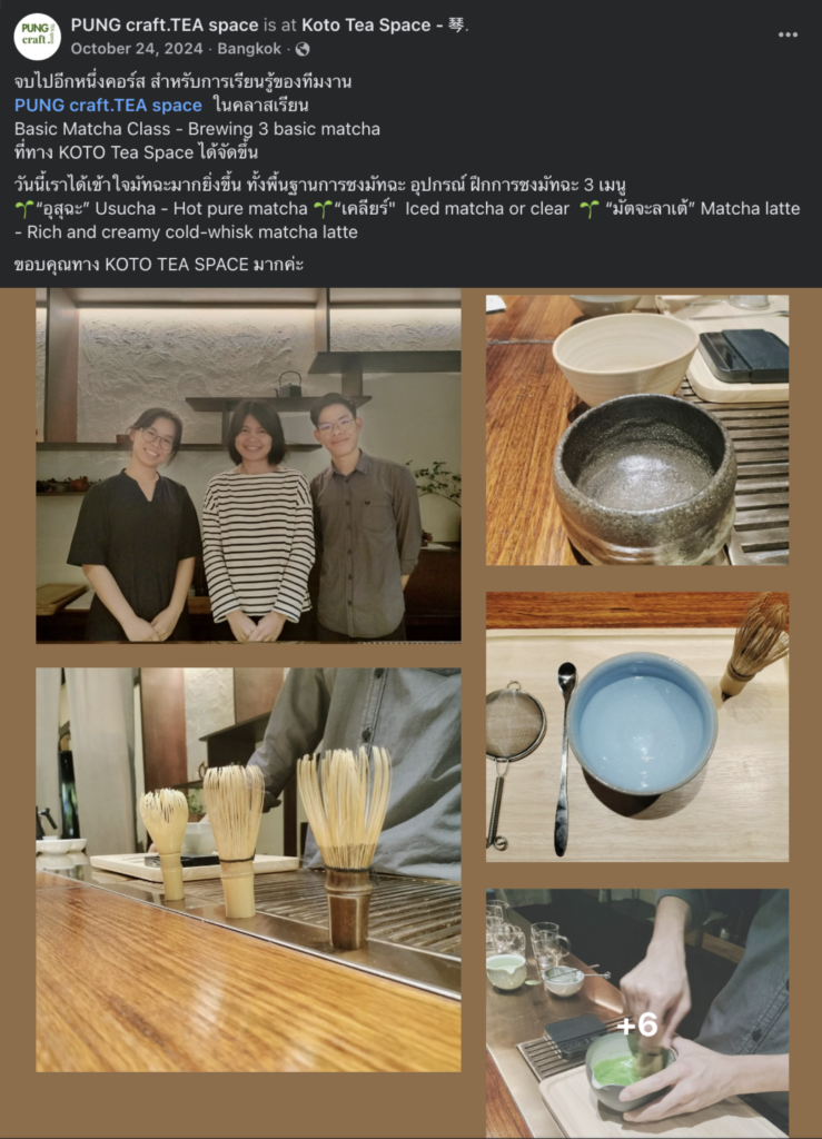 @m_ilibamMatcha brewing workshop 🍵 อยู่ในจุดที่ไปเรียนชงมัทฉะแล้ววว 🤍 รู้สึกคิดถูกมากที่มาลง เค้าทำให้การชงมัทฉะที่บ้านสนุกขึ้นเยอะเลยย 🥺 #เรียนชงมัทฉะ #มัทฉะ #ชาเขียว #workshop #kototeaspace #matcha♬ カフェでボサノバを聴く休日 – ya-su